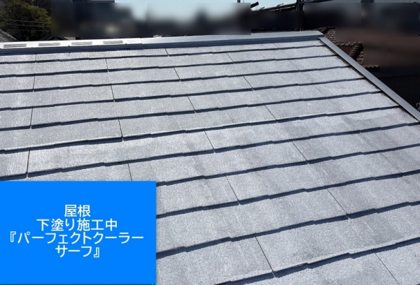 横浜市戸塚区【屋根塗装】【遮熱塗装】 S様邸外部改修工事の屋根塗装を行いました。(遮熱塗装 下塗り)