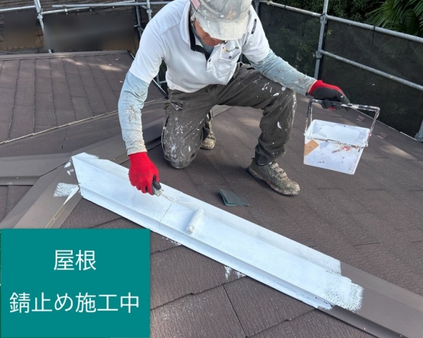 2019/09/23 横浜市泉区 K様邸外部改修工事 こんにちは。 この度は神奈川県内、横浜市戸塚区に数ある塗装・外壁塗装・屋根塗装・防水業者から、池田興商をお選び頂き、誠にありがとうございます。この場をお借りして御礼申し上げます。 K様邸の屋根塗装工事に入りました。 さび止めを塗り、乾燥を待ったあと下塗り作業をしていきます。