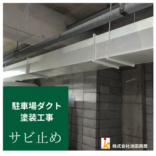 横浜市青葉区【鉄部塗装】【塗装工事】駐車場内換気ダクト塗装工事(ケレン・サビ止め)