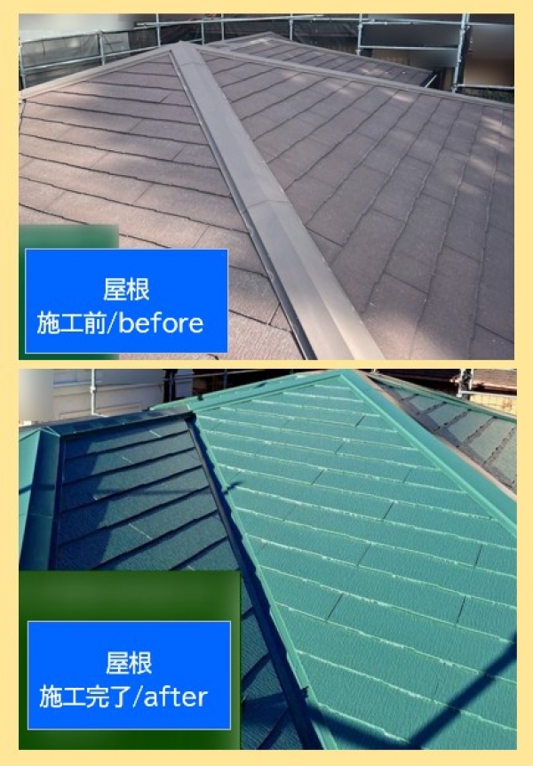 施工前は色褪せや塗膜の劣化が目立っていましたが、塗装後はまるで新築のようなピカピカ屋根になりました!
